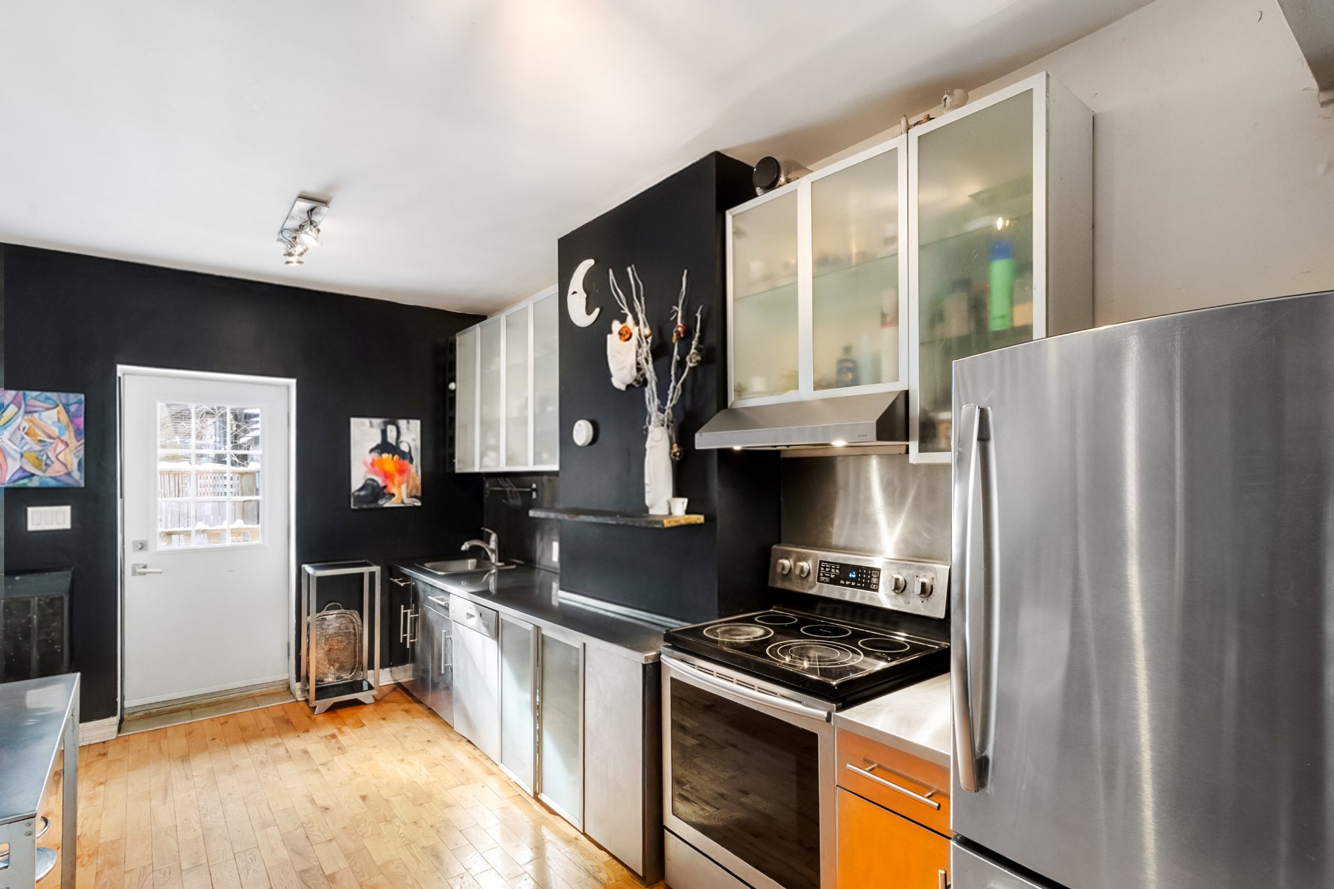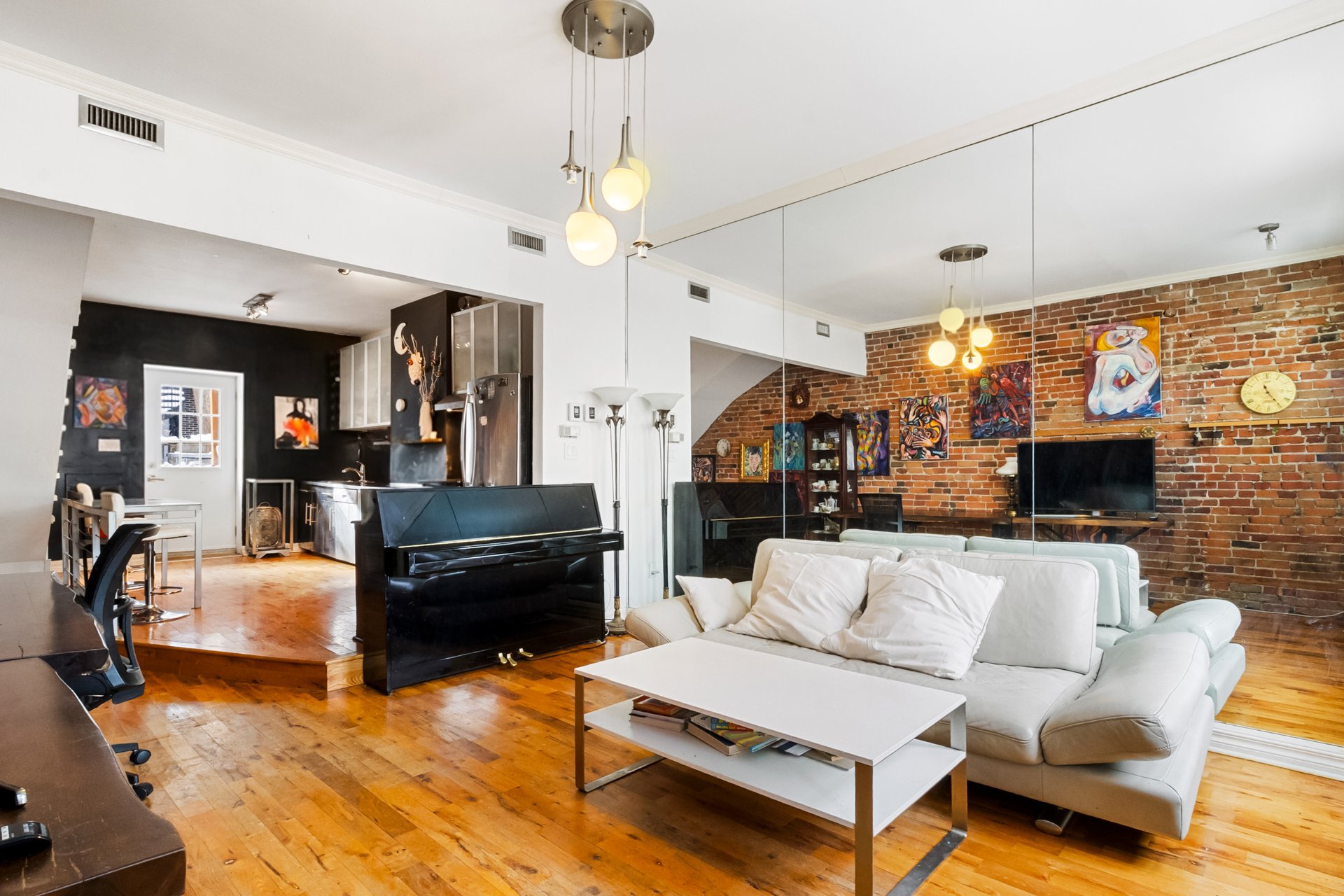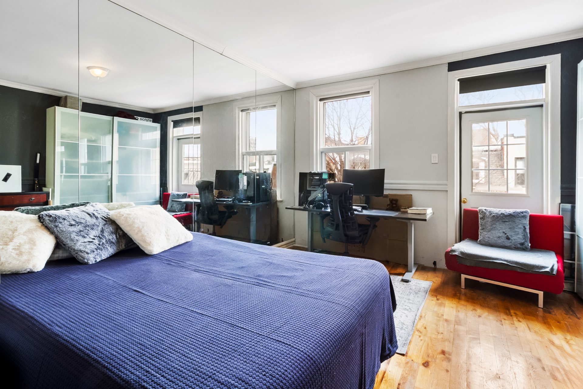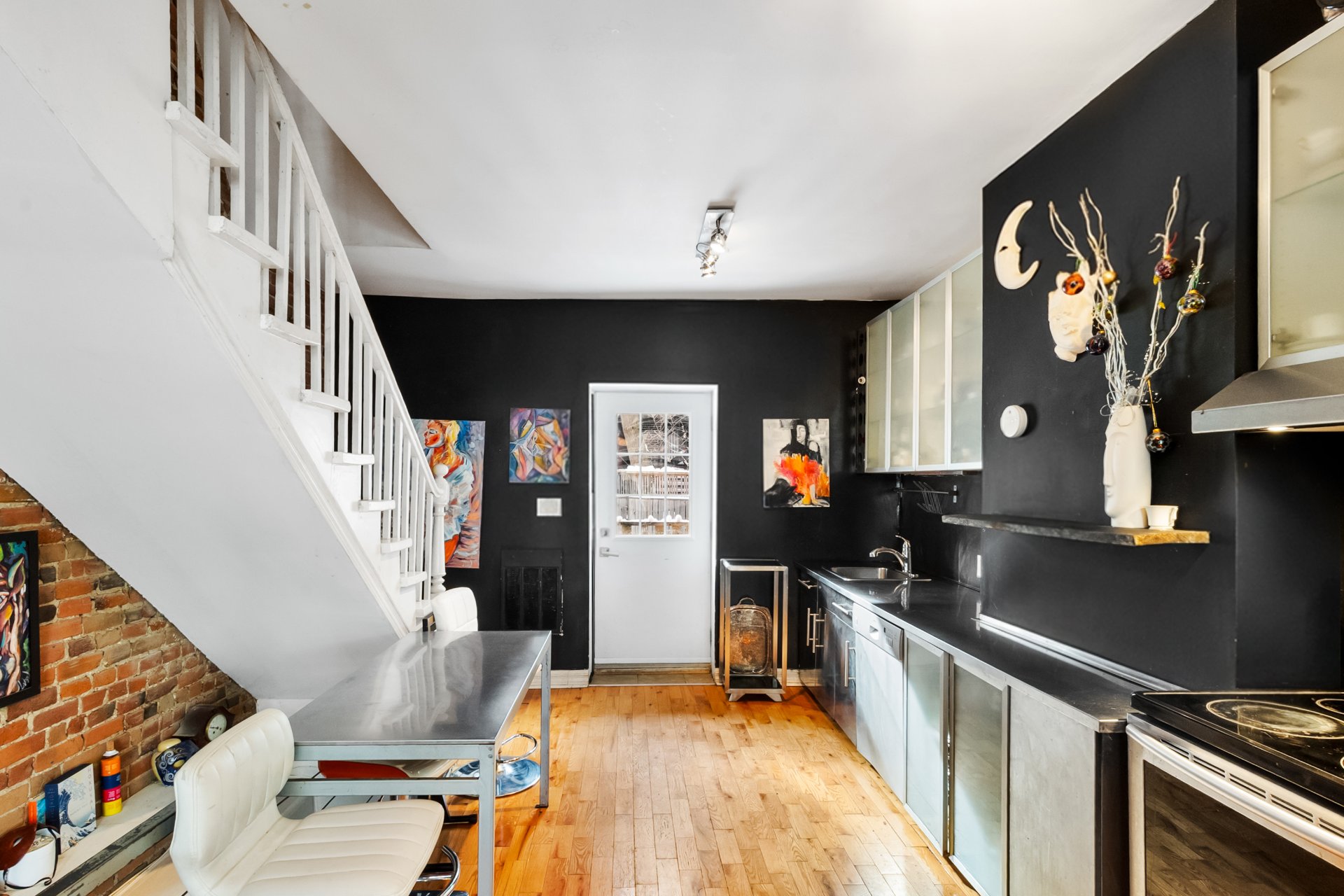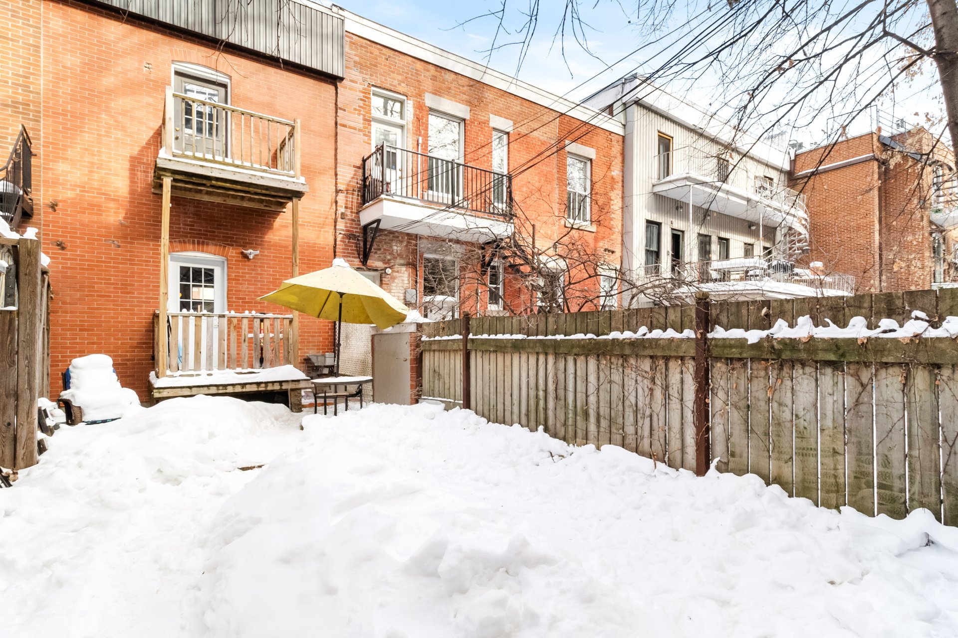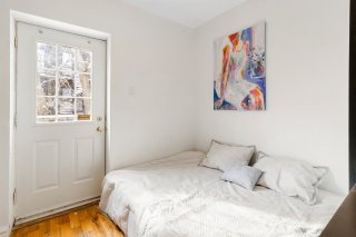 Stationnement disponible dans la cour arrière, accessible par un droit de passage. Façades avant et arrière, toit et balcons rénovés. À l'étage : deux chambres lumineuses. Au niveau jardin : élégante salle familiale avec entrée privée, actuellement aménagée en troisième chambre. Cour intime avec terrasse en bois et pavés imbriqués, idéale pour recevoir. Emplacement exceptionnel à deux pas de McGill, du parc Jeanne-Mance, du Square Saint-Louis et du mont Royal, près des métros, transports et des meilleures adresses du quartier.