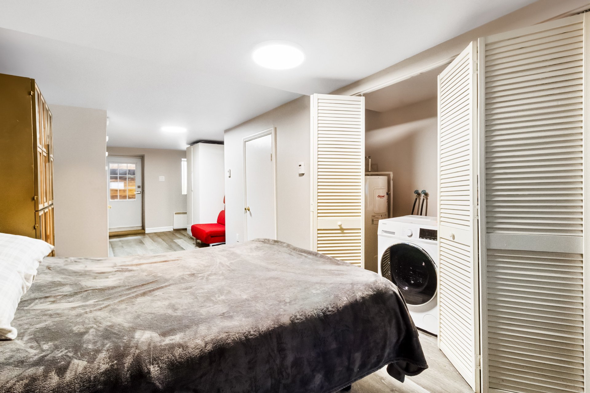 -- Buanderie au sous-sol avec accès avant et arrière.