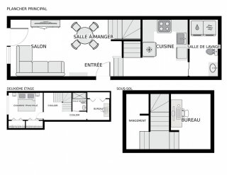 | Bureau à domicile | 9.10 x 7.1 P | Sous-sol | Bois |