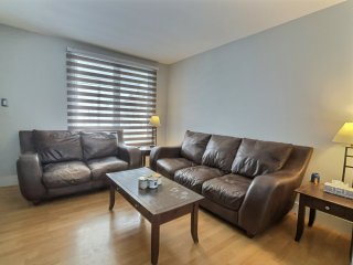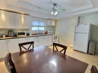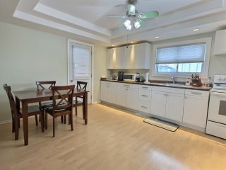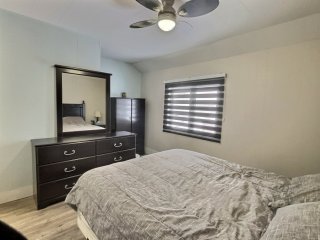 Inclus : 3 bacs (poubelle, composte, recyclage), stores, luminaires fixes, réfrigérateur, poêle, laveuse, sécheuse,